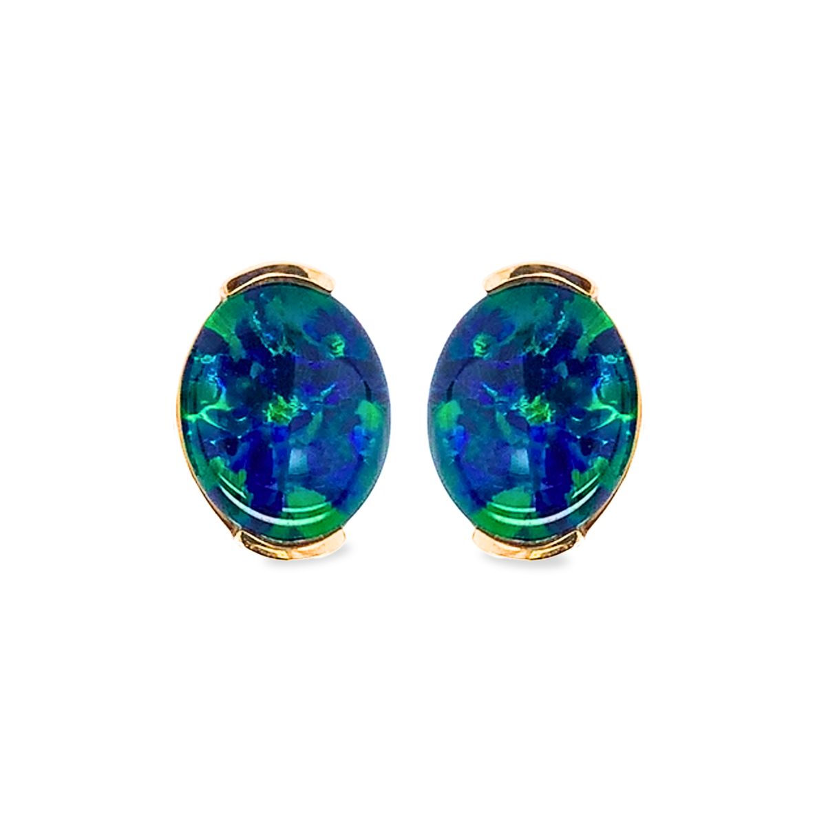 9ct Yellow Gold Australian Triplet Opal Stud Earrings